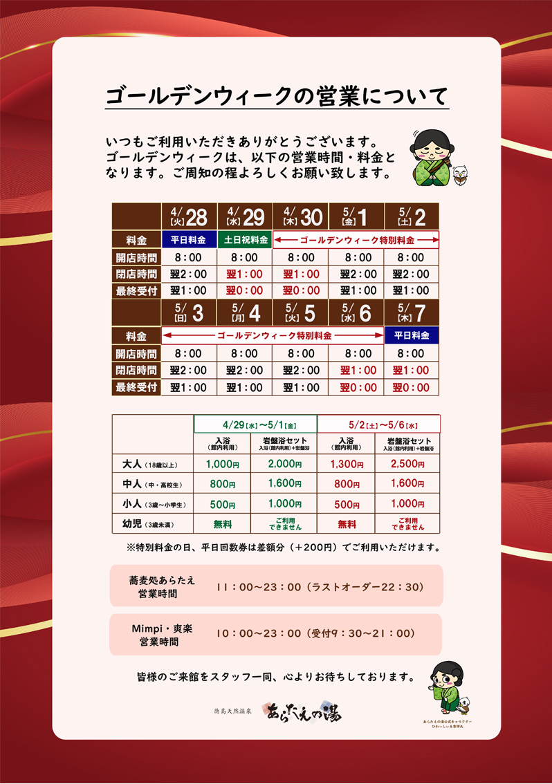 ゴールデンウィーク期間中の営業時間と